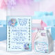 "Blueberry Wishes and Gnomery Kisses" est une invitation qui capture magnifiquement l'essence de la célébration d'une nouvelle vie. Ce design présente des nuages, des teintes bleues et violettes, ce qui le rend approprié pour une Baby Shower garçon, tandis que les gnomes filles en jupes mignonnes le rendent également approprié pour une Baby Shower fille. Ce thème enchanteur de myrtilles et de gnomes incarne la magie de l'accueil d'un nouveau bébé. L'imagerie délicieuse de myrtilles juteuses associées aux gnomes fantaisistes crée une invitation qui inspire la joie et l'émerveillement pour tous les invités. Rendez votre baby shower inoubliable ! Découvrez notre collection pour plus d'idées amusantes pour célébrer cette occasion spéciale.
