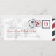 Customisez cette carte d'embarquement d'inspiration vintage et annoncez votre date de mariage de façon amusante et unique! Montré dans les tons Navy et Dark Red. Un mélange de polices de caractères et de polices de calligraphie pour une sensation vintage.