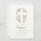 Invitation vos proches pour célébrer le baptême de votre enfant avec cette invitation élégante et charmante. La pièce maîtresse présente une croix magnifiquement composée de fleurs et de verdure aux couleurs pastel, symbolisant la pureté et la croissance. L'arrière - plan blanc et doux met en valeur les délicats détails floraux, tandis que le texte est stylisé dans une combinaison moderne de polices de script et sans-serif, ajoutant une touche gracieuse et contemporaine. Parfait pour une occasion mémorable et pleine de foi. B006