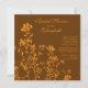 Commencez votre évènement par notre invitation à la douche nuptiale d'automne branchée et moderne, avec des fleurs d'orange d'automne mod posées sur un arrière - plan marron. customisez notre invitation avec vos informations mariages et vous êtes prêts à partir. Disponible dans notre boutique www.celebrateitinvites.com dans d'autres combinaisons de couleurs.