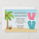 Invitation les invités pour une douche de mariage à la plage dans le style avec cette invitation moderne et amusante à la douche de mariage à la plage. Comprend une paire de mariées et un marié de palmes.