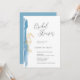 Le design d'invitation de carte de douche à thème océanique comprend un hippocampe et un effet de brosse d'eau bleu marine sur le bord.
