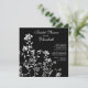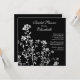 Commencez votre évènement avec notre invitation à la douche nuptiale moderne et branchée, avec des fleurs blanches mod placées sur un arrière - plan noir. customisez notre invitation avec vos informations mariages et vous êtes prêts à partir. Disponible dans notre boutique www.celebrateitinvites.com dans d'autres combinaisons de couleurs.