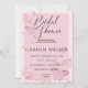 Une élégante invitation à la douche nuptiale rose moderne avec des papillons roses sur une texture de papier fait main.