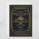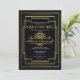 Cette invitation art déco s'inspire des années 20 et Great Gatsby et présente un cadre art déco doré posé sur un arrière - plan damassé noir. Daisy Buchanan approuverait !