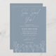 Invitation Minimale Dusty Blue Floral Douche nuptiale. Cette invitation simple et élégante impressionne vos invités par sa palette luxueuse blanche et bleue et ses fleurs élégantes. Le chic sophistiqué de la calligraphie moderne et branchée apportera une belle touche qui se démarquera de tout le reste. Cette collection est le choix parfait pour rendre votre soirée de douche nuptiale inoubliable! Éléments correspondants disponibles. Voir la collection complète ici : https://www.zazzle.com/collections/dusty_blue_classic_minimalist_collection-119092113454390993