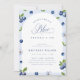 Célébrez la future mariée avec cette Invitation de douche nuptiale à base de bleuets Quelque chose, avec un motif de bleuets délicat et un design élégant en arc. Les tons d'aquarelle bleu poussiéreux, associés à des détails fleurs sauvages et à une police de script moderne, créent un look frais et intemporel. Parfait pour une douche nuptiale d'été avec une touche unique et élégante.