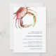 L'invitation à la douche nuptiale chic côtière présente une illustration de crabe rouge aquarelle de style vintage, avec les détails de votre douche nuptiale en bleu marine classique. Parfaites pour les douches nuptiales à thème de plage, d'été ou nautique, ces invitations de style côtier renversent à bleu marine solide.