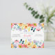 Invitation étonnante à une Fête des mariées de Garden Party. Doté d'une superbe aquarelle fleur sauvage et eucalyptus dans les tons bleu, pêche, violet, violet, bleu et vert. Personnalisé à l'avant avec des informations sur la douche et à l'arrière avec le registre de la mariée. Donne le ton parfait pour une douche extérieure !
