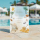 Célébrez la future mariée avec cette invitation à la douche nuptiale sur le thème de la plage avec une scène de pique-nique aquarelle avec des palmiers dans les tons jaune, orange et neutre.