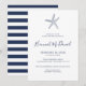 Carte d'invitation de la marine nautique Starfish Bridal Shower. Très simple et ancien modèle de design de goût pour enregistrer la carte de date. Pour plus de personnalisation, cliquez sur le bouton "Personnaliser" ou "Personnaliser" et utilisez l'outil de conception pour modifier. Vous pouvez modifier la couleur, le style et les tailles du texte. Vous pouvez changer la couleur de l'arrière - plan aussi comme vous voulez, bien sûr. Vous voulez d'autres types de papier ? s'il vous plaît choisir celui que vous aimez. Profitez de customiser le modèle pour la journée spéciale.