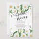 Une invitation à la douche à la nuptiale florale de la marguerite blanche est offerte sur un arrière - plan blanc immaculé. Retourner notre invitation pour voir un retour vert de coordination pour une touche spéciale.
