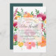Élégante et moderne invitation à la douche nuptiale fleurie dispose d'un arrière - plan de fleurs de coquelicot couleur aquarelle vibrante et feuilles verts. Les détails de votre douche nuptiale sont superposés sur un élément blanc pur dans un élégant lettrage noir foncé accentué de calligraphie de style manuscrit.