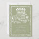Célébrez l'amour en pleine floraison avec notre charmant concours de douche nuptiale de marché floral vert et blanc. Cette charmante décoration comprend un char à fleurs fantaisiste orné de pots de fleurs vibrantes et une pancarte chaleureuse qui dit "L'amour est en fleurs", personnalisée avec les noms du couple. L'invitation est magnifiquement encadrée d'un gribouillis dessiné à la main, ajoutant une touche d'art à votre événement spécial. Parfait pour une douche de mariée à thème rustique ou jardin, cette invitation donne le ton d'une fête mémorable remplie d'amour et de joie.
