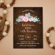 Invitation à la douche nuptiale branchée avec une illustration florale délicate avec des succulents et des feuilles sur un arrière - plan rustique en bois foncé. Ce design est élégant mais ludique et attrayant, parfait pour une mariée avec un grand sens du style. Le thème est parfait pour l'été ou l'automne et peut s'adapter à un jardin, botanique, floral ou un événement rustique.