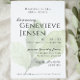 Invitation à la douche nuptiale - blanc avec un design à feuilles larges vertes.