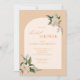 Célébrez votre douche nuptiale dans le style avec notre invitation à la douche nuptiale de pêche florale moderne, avec des pivoines élégantes et des fleurs roses suspendues au design moderne arche dans la typographie classique mais élégante.