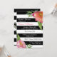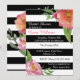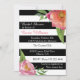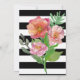 Élégante invitation à la douche nuptiale faite dans un motif à rayures horizontales noir et blanc audacieux, avec aquarelle des fleurs colorées, dans le coin supérieur droit et le coin inférieur gauche. Personnalisez le texte pour votre événement nuptial.
