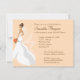 Une jeune mariée brune, aux yeux bruns, regarde avec dédain par-dessus son épaule, au-dessus d'un arrière - plan à motifs damassés de pêche. Ton texte orange profond customisé l'entoure. Les informations du registre se trouvent à l'arrière. Disponible en couleurs alternatives avec un assortiment de couleurs peau/cheveux/oeil pour la mariée. Rapprocher les cartes de remerciement, les faveurs et l'affranchissement disponibles. Contactez-moi par l'intermédiaire de mon magasin si vous préférez un autre arrière - plan.
