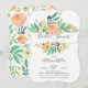 Invitation à la douche nuptiale moderne avec cadre de fleurs de pêche orné de verdure feutrée. Retournez notre invitation wedding shower pour voir un motif floral pour une touche spéciale.