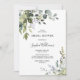 Le design présente de beaux éléments aquarelle fleuris dans des tons de verdure d'eucalyptus et des éléments en feuilles.