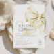 Invitation à la douche nuptiale Gold Bow. Cette invitation sophistiquée comprend un arc en or classique et un script manuscrit romantique, parfait pour une douche de mariée branchée et lunatique. Le design élégant avec un ruban satiné doré et le charme coquette ajoute une touche de classe à votre événement. Customisez le texte correspondant aux détails de votre événement et créez une invitation intemporelle pour votre journée spéciale.