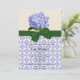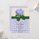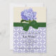 Une belle invitation pour une belle mariée à être ! Il dispose d'une hydrangée lavendar en haut et d'un motif géométrique lavendar en bas. Un graphique d'un ruban vert et d'un arc séparent les deux. Tout le texte est personnalisable.