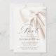 Invitation à la douche nuptiale en ivoire Bow. Cette invitation sophistiquée comprend un arc blanc classique en ivoire et un script manuscrit romantique, parfait pour une douche de mariée branchée et fantaisiste. Le design élégant avec un ruban en satin d'ivoire et le charme coquette ajoute une touche de classe à votre événement. Customisez le texte correspondant aux détails de votre événement et créez une invitation intemporelle pour votre journée spéciale.