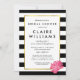 Choisissez ces belles invitations pour la mariée classique moderne! Il présente un arrière - plan rayé noir et blanc audacieux, une bordure en faux or et une jolie pivoine rose aux aquarelles vives et vives. Ajoutez les détails de votre douche nuptiale dans un mélange chic de bloc et de lettres de script en noir croustillant.