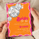 Préparez-vous à faire la fête avec cette invitation à la future mariée vibrante avec des boules de disco étincelantes et un étonnant jeu de couleurs orange et rose! Avec un espace pour personnaliser le nom de la mariée et les détails de l’événement, cet invitation est parfait pour les soirées de poule, les fêtes de bachelorette, ou toute célébration pré-mariage glamour. Une façon amusante et fabuleuse de donner le ton pour une nuit inoubliable!