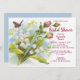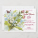 Une invitation à la douche nuptiale avec une peinture vintage d'un papillon avec le lis des fleurs de la vallée et des roses.