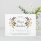 L'invitation à la douche nuptiale chic présente le nom de la mariée dans un élégant script de calligraphie, encadré de pêche et de fleurs roses rousses, bourgeons et verdure. Personnalisez avec vos détails de douche nuptiale sous.