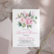 Invitation de douche nuptiale personnalisable avec des illustrations d'aquarelle dessinées à la main de roses roses, de jolis feuilles et de feuillage. Idéal pour les somptueuses douches nuptiales et le brunch printanier.