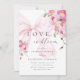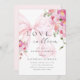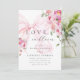Célébrez la future mariée avec cette élégante invitation à la douche nuptiale "Amour en Fleur". Dotée d'une délicate aquarelle aux tons roses doux, cette invitation dégage charme et raffinement. Une proue rose et une typographie de script gracieuse apportent une touche romantique, ce qui en fait le choix idéal pour une fête de jardin, un printemps ou une douche de mariée à thème floral.
