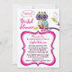 Une belle illustration rétro d'une chouette tanné brillante aux couleurs vives, bleu, jaune et rouge-orange et rose chaud et aux motifs floraux. Cette invitation rose vif est parfaite pour des douches nuptiales ludiques, lumineuses et girly. Si vous aimez cette invitation mais que vous souhaitez des modifications, veuillez cliquer sur le bouton "contacter". Merci.