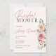 Carte d'invitation Whimsical bridal douche avec aquarelle illustrant les fleurs sauvages en rose et blanc. Parfait pour une fête de printemps ou d'été.
