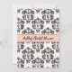 Jolie et sophistiquée invitation à la douche nuptiale à la parisienne avec une bordure florale damassée noire et blanche, design imprimé en ruban rose et la tour Eiffel sur elle. Conçu par Chrissy H. Studios, LLC.Tous droits réservés.