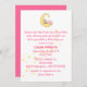 Un bébé doux saupoudrer l'invitation faite en blanc, avec des graphiques d'une petite fille endormie, sur la lune, avec des étoiles jaunes qui traînent en arrière l'invitation. Le texte en rose est prêt à être personnalisé pour votre événement baby shower. Jolie invitation à la mère d'être chérit.