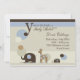 Cette invitation à la douche pour bébé garçon d'animal en peluche comporte un éléphant, une girafe et une tortue entourée de cercles en marron, tan et bleu. Il y a beaucoup de place à l'avant et à l'arrière pour ajouter toutes vos informations sur la douche.