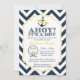 Ahoy ! C'est un garçon. Cute invitation au baby shower nautique avec grand motif en chevron et éléments de voile. Ancre et corde nautique. Bleu et jaune gras, faites une déclaration avec ce design!!