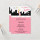 Cette invitation contemporaine présente une silhouette noire d'un paysage urbain contre un arrière - plan rose et blanc avec le portrait d'une adorable femme enceinte vêtue de rose et tenant un parapluie rayé vert et rose pendant qu'elle descend la rue. Écrit en rose dans le ciel : "C'est une fille". Une couronne orne le "g" en fille. L'arrière de ce design Premium a le même thème de couleur. Il y a beaucoup de texte personnalisable sur le devant de cette invitation pour que vous puissiez ajouter vos informations de fête. Ce dessin est protégé par le droit d'auteur et ne peut être copié ou redistribué. Pour toute question sur ce site ou d'autres conceptions dans ce magasin, ou si vous avez besoin d'aide pour personnaliser, veuillez utiliser la fonction d'envoi de message jointe à ce magasin et nous serons heureux de vous aider