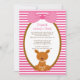 L'adorable invitation au Baby shower australien Outback montrant un mignon kangourou momma tenant un bébé kangourou sur un arrière - plan rayé. Objets correspondants disponibles dans notre boutique. Parfait pour un baby shower de petite fille. ©Stockberry Studio