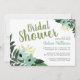 Conception moderne branchée d'invitation à la douche nuptiale avec une bordure tropicale fleurie audacieuse et écriture de calligraphie stylisée. Personnalisez le design avec les détails de votre douche nuptiale avec espace vide au dos pour ajouter des photos ou du texte supplémentaire. Utilisez les outils de conception pour customiser toutes les polices de texte et les couleurs afin de créer une conception unique d'une nature unique.