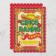 Cette invitation sur le thème du Cinco de Mayo est le moyen idéal de planter le décor pour votre fête d'anniversaire mexicaine ! En haut, un grand sombrero avec les mots Cinco de Danno Fiesta en dessous. La bordure festonnée rappelle les drapeaux de papel picado qui pendent dans les rues du Mexique. Personnalisez cette invitation avec tous les détails amusants de votre fête. Les couleurs incluent le rouge, le jaune, l'orange, le vert et le noir.