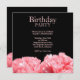 Invitation à la fête d'anniversaire avec oeillets roses. Vous pouvez facilement modifier la couleur du texte, la police, la taille et la position en cliquant sur le bouton customiser.