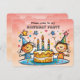 Organisez la meilleure fête d'anniversaire avec vos jeunes amis en envoyant cette invitation avec tous les détails d'une fête d'anniversaire amusante emballée. Les amis adoreront cette invitation de petites filles célébrant avec des casquettes de fête et gâteau sur un arrière - plan de nuages.