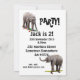 Une invitation amusante à la fête d'anniversaire pour le singe cheeky de votre famille. Un bébé éléphant debout sur un nombre, avec beaucoup de nombres tombant dans l'arrière - plan. Le dos a des éléphants sur les skateboards.