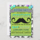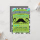 Invitation pour la fête d'anniversaire Mustache Bash Chevron. Votre fête sera la coqueluche quand tout le monde apportera sa moustache à la fête d'anniversaire. Cette invitation d'anniversaire pour garçon présente un fond gris neutre avec des étoiles à profusion et une superposition verte en chevron qui contient tout le texte de votre fête. Une bannière grise vers le haut indique "Fête d'anniversaire" au cas où quelqu'un se poserait la question. Le texte serif bleu, noir et blanc est disposé dans un style d'affiche très tendance et branché et une énorme moustache se démarque également sur cette invitation. Une invitation très hipster pour n'importe quelle fête d'anniversaire, que vous soyez adulte ou enfant !