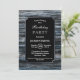 Une invitation à l'anniversaire de la grange bleue bordée d'argent rustique avec le texte blanc mis en surbrillance sur un arrière - plan noir.