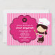 Commencez votre fête avec notre mignonne invitation d'anniversaire cuisine avec un adorable petit chef installé sur un arrière - plan à rayures roses avec un cupcake, un cookie et des gadgets de cuisine. Garanti de sourire sur le visage. Parfait pour tous les âges de fête d'anniversaire ! Personnalisez simplement vos informations et vous êtes tous prêts à partir ! Des articles de correspondance tels que timbres-poste d'anniversaire, autocollants de faveur, cartes de remerciements et autocollants de remerciement sont également disponibles dans notre boutique. © Zenware Designs